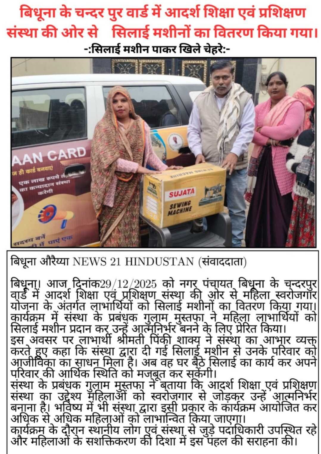 फ्री सिलाई मशीन वितरण कार्यक्रम तिर्वा